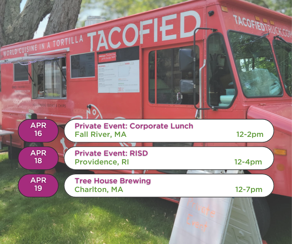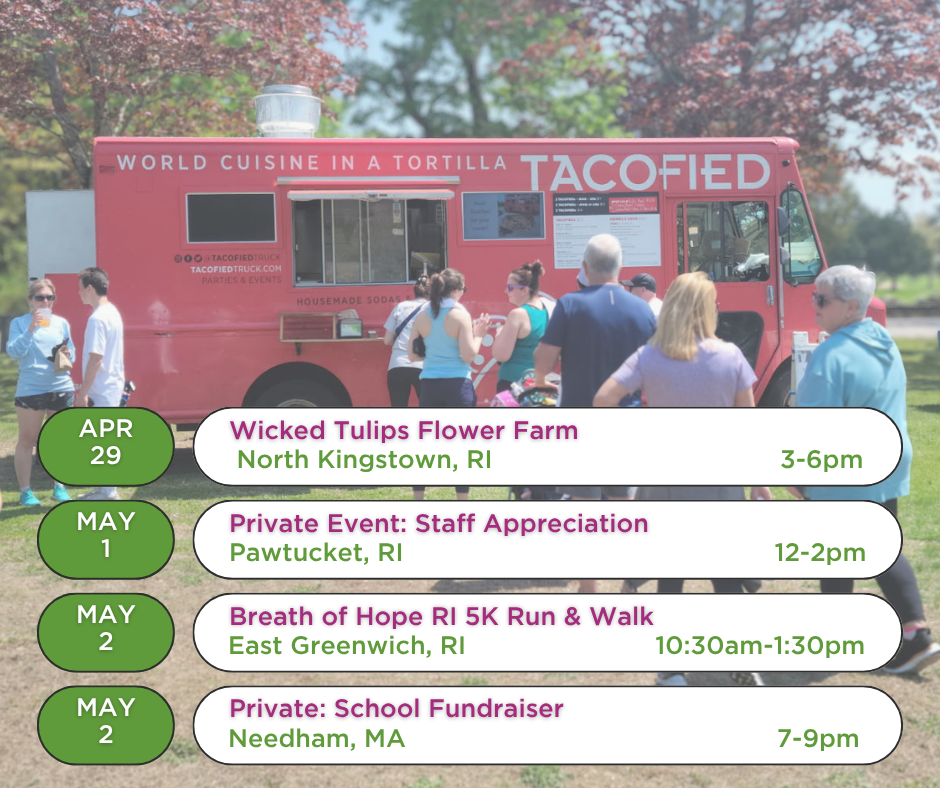 “The best food I had all summer was from the Tacofied truck. The food is SO fresh and flavors are delicious. Can’t wait for more!“